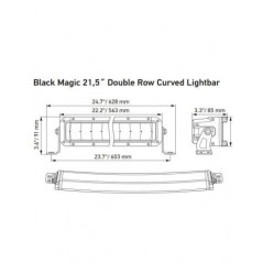 Barra LED curva de 21,5” de la serie Black Magic de Hella, esta Barra LED cuenta con una línea de 42 LEDs de alta potencia que ofrece una intensidad lumínica de 5.880lm con un consumo de 91W, está Homologada con ECE-E149 y EMC R10 y CEPE 45. Son Válidas para 12V y para 24V y el haz de luz es combo, combina luz de largo alcance con luz de trabajo.